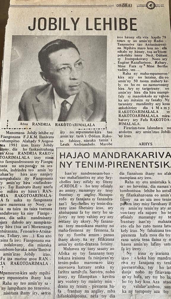 MAMY RAKOTOARIMALALA ÉTAIT LE DEUXIÈME ENFANT